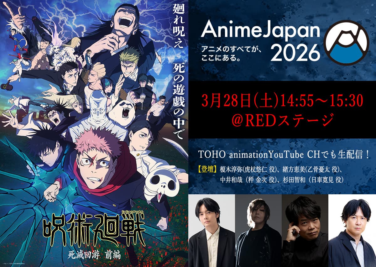 / #AnimeJapan 2026 1日目開幕!! \ 『#呪術廻戦』は TOHO animationブースや MAPPAブースに登場!! さらに本日14:55~はREDステージも!! ぜひお楽しみに!! ▼詳細はこちら #死滅回游 #jujutsukaisen #AJ26