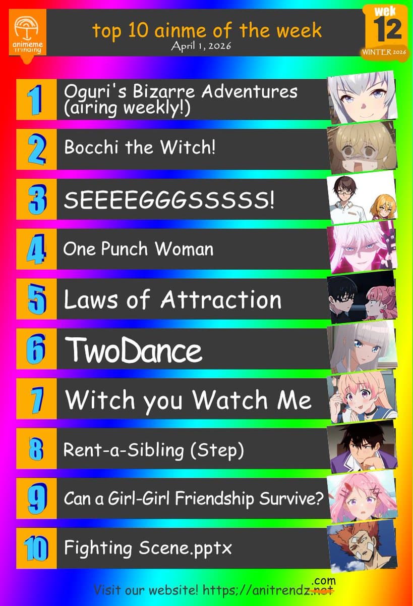 Here are your Top 10 Anime for Week#12 of the Winter 2026 Anime Season! Remember to check our WEEEEEIIIIIIBsite for more!