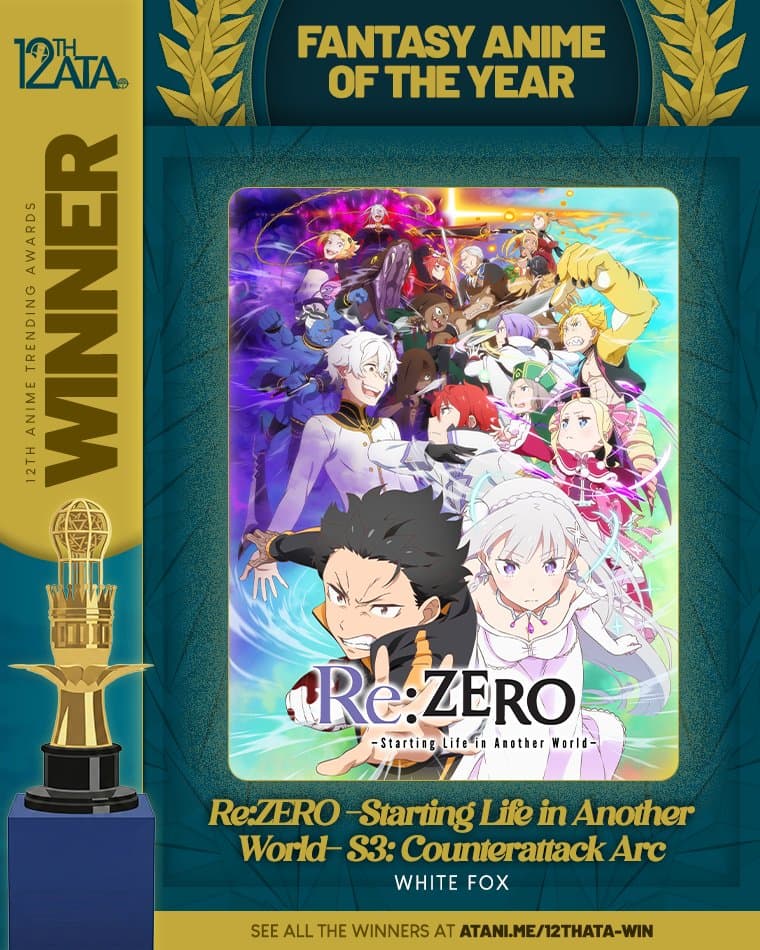 Congratulations to Re:ZERO -Starting Life in Another World- for winning FANTASY ANIME OF THE YEAR at the 12th Anime Trending Awards! This is Re:ZERO Starting Life in Another World's first win tonight.