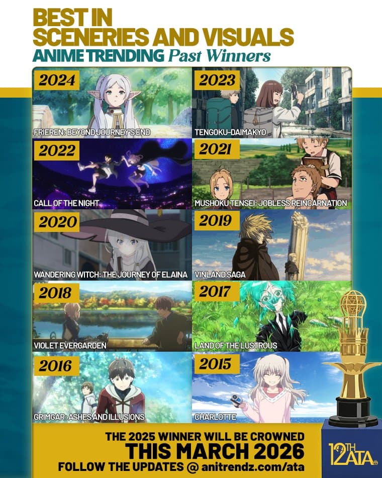 ⏳ THE 12TH ANIME TRENDING AWARDS IS COMING SOON! Today, let's take a look at the anime that previously won Best in Sceneries and Visuals!