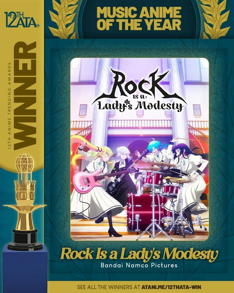 Congratulations to Rock Is a Lady's Modesty for winning MUSIC ANIME OF THE YEAR at the 12th Anime Trending Awards! This is Rock Is a Lady's Modesty's first win tonight.