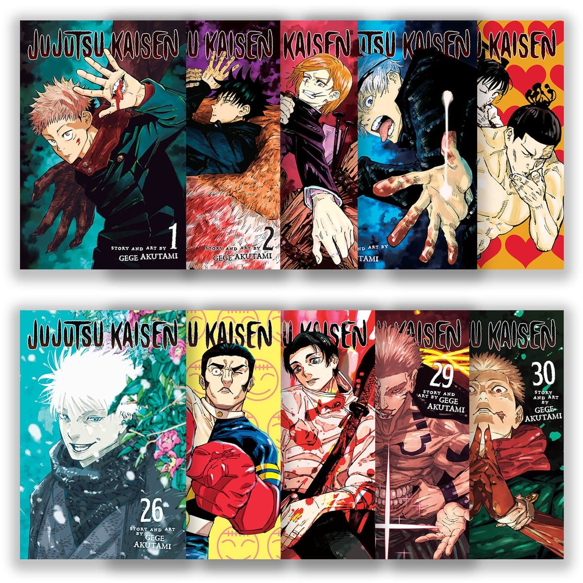 Announcement: A legendary demon’s power threatens the world, and one teen’s desperate choice ignites an all-out war. Packed with all 30 volumes, volume 0, and a double-sided poster, the Jujutsu