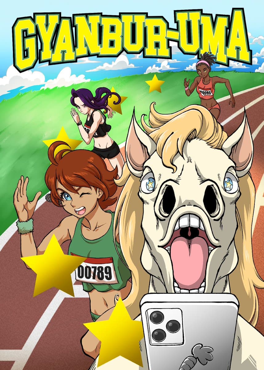 Announcement: Ever since H. Orse pulled his number one husbando, his favorite game became boring. Adrift, H discovers the world of running betting. Will this be the start of a new obsession? Gyanbur-uma, with story by U. Ma and art by @KentaroPJJ