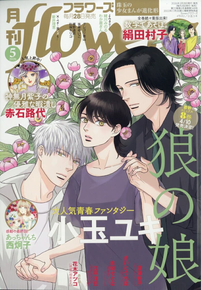 Werewolf Romance "Ookami no Musume - The Tale of Werewolf" by "Kids on the Slope" creator Kodama Yuki is on cover of the upcoming Monthly Flowers issue 5/2026. Series ranked 8th on the Prestigious