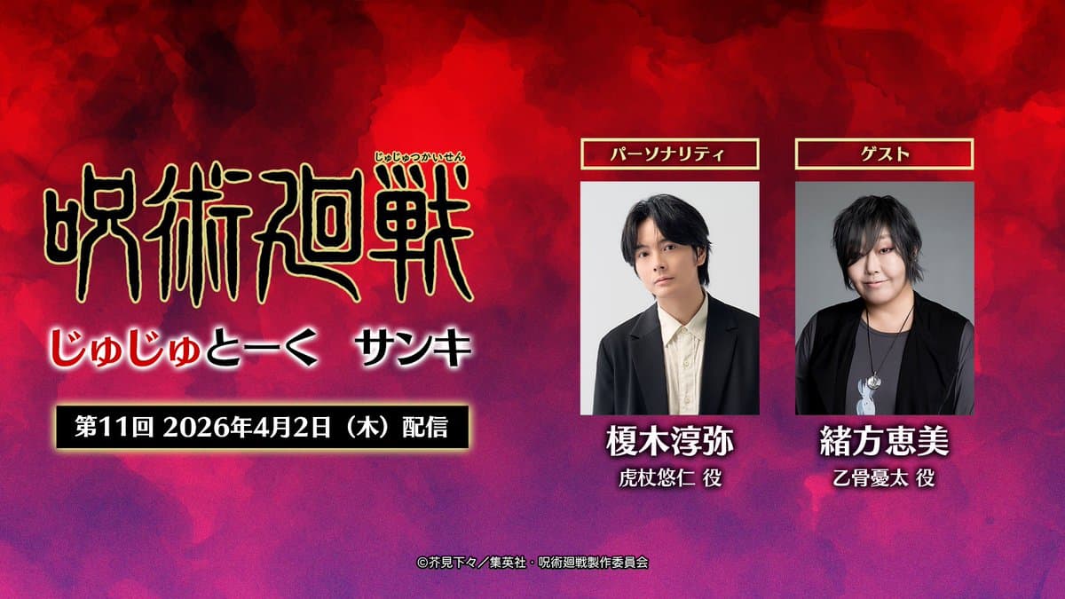 / 『#呪術廻戦』 「#じゅじゅとーく サンキ」 第11回配信!! \ ホストは虎杖役 #榎木淳弥 さん、 ゲストは乙骨役 #緒方恵美 さん ▼ご視聴はこちら #死滅回游 #jujutsukaisen