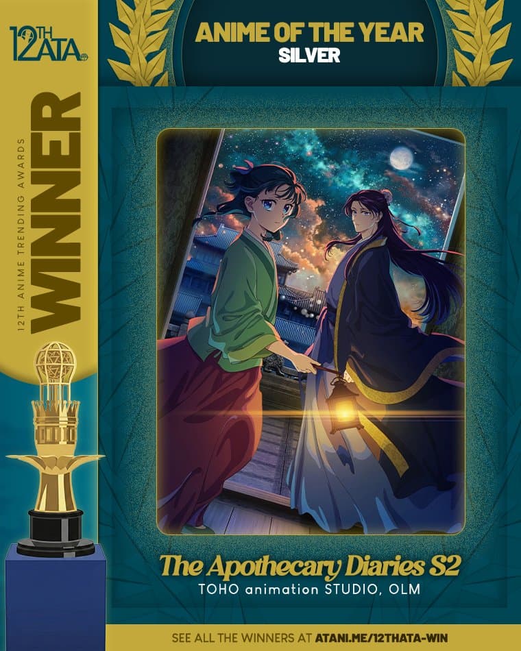 The Apothecary Diaries takes SILVER (2nd Place) for the Anime of the Year Title of the 12th Anime Trending Awards! The series won 6 awards, and 9 other podium finishes tonight.