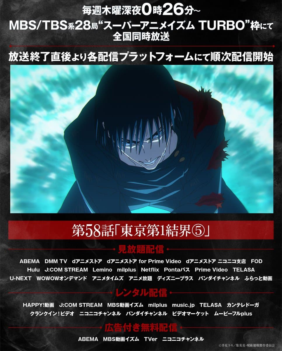 / 「#死滅回游 前編」 第58話(第3期 第11話) 配信スタート!! \ 第58話「東京第1結界⑤」 各配信プラットフォームにて順次配信開始!! ▼配信PF一覧はこちら ▼ABEMAでは全話無料配信中!!(過去作含む) #呪術廻戦 #jujutsukaisen