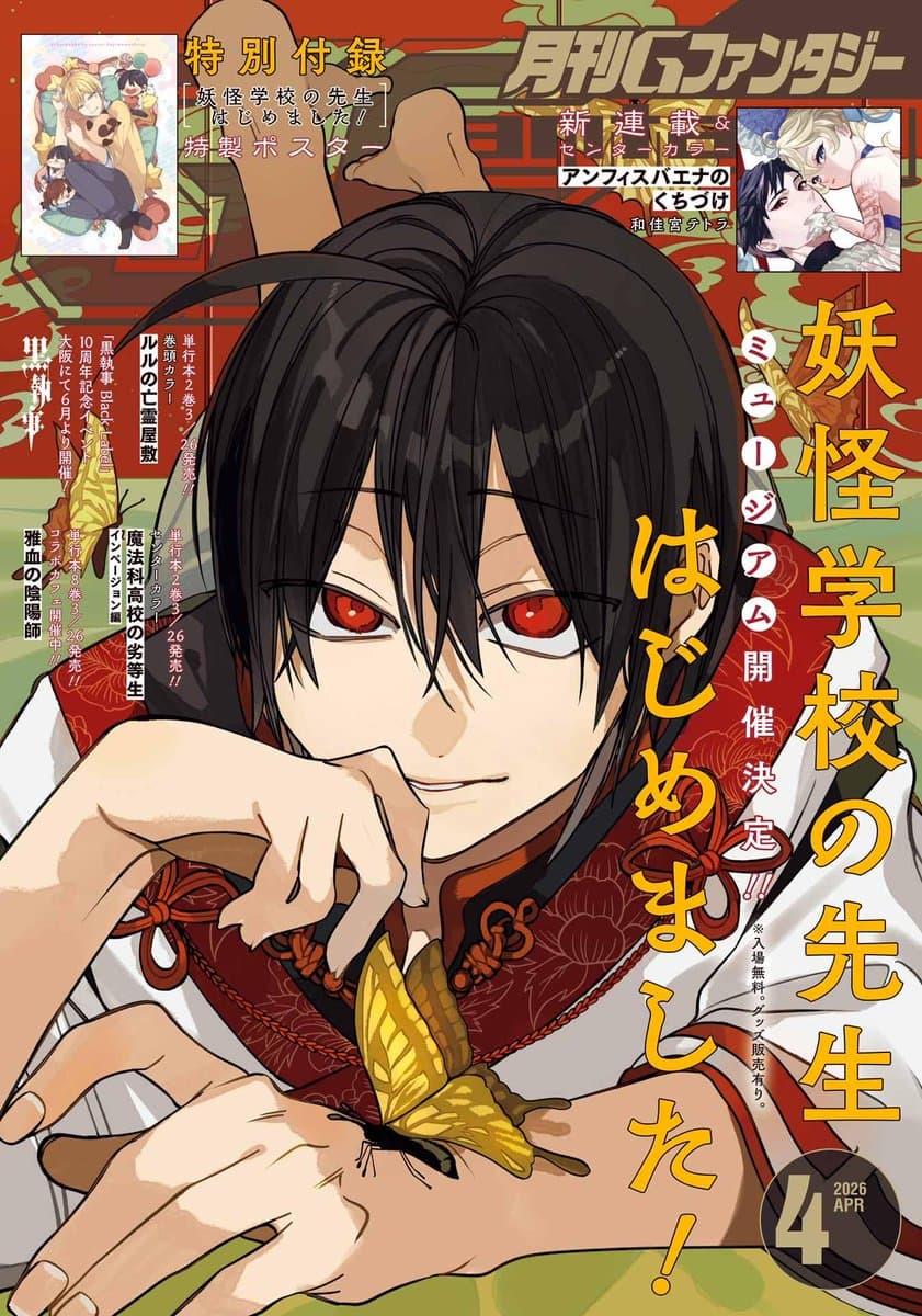 "A Terrified Teacher at Ghoul School" by Tanaka Mai is on cover of the upcoming G-Fantasy issue 4/2026. Slice of Life Comedy Manga about an easily scared high school teacher and his supernatural eerie students. (Youkai Gakkou no Sensei hajimemashita)