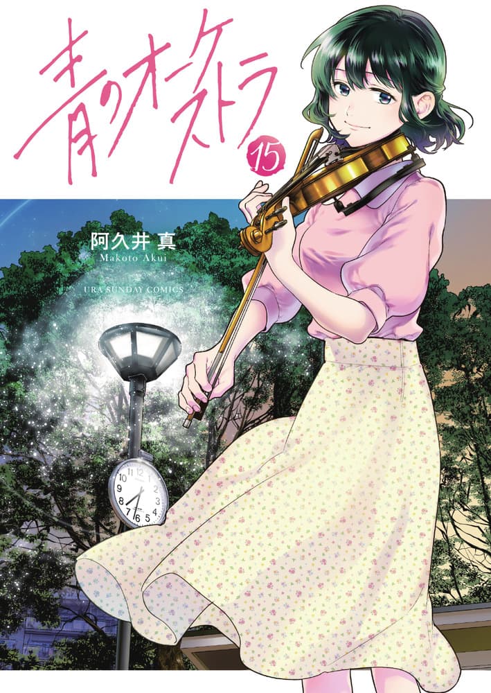 Music Youth Drama "Blue Orchestra" vol 15 by Makoto Akui Series has 5 million copies in circulation for vols 1-14 including digital. Coming-of-Age Youth Drama about a teenage boy - a former genius violinist - and the bonds he forms with the members of a