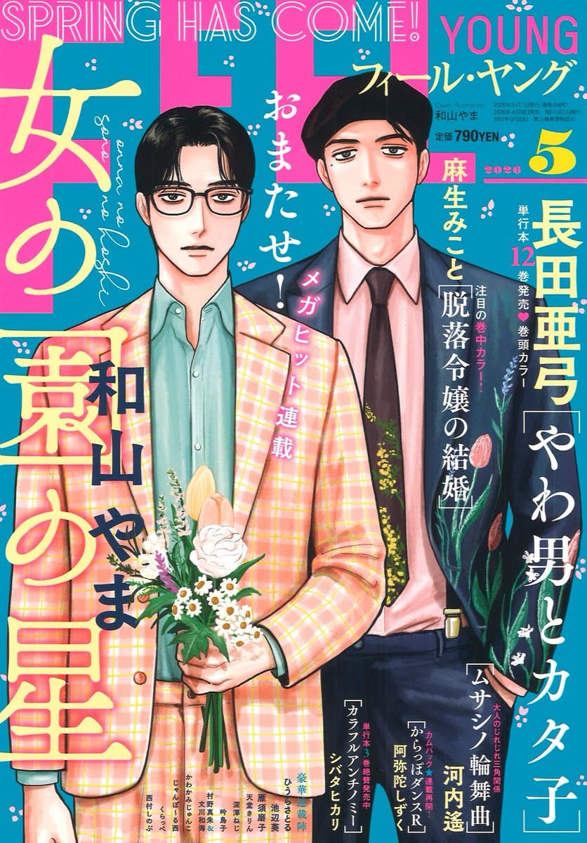 "Let's Go Karaoke" creator Wayama Yama's Teacher Comedy "Hoshi in the Garden of Girls" is on cover of Feel Young issue 5/2026 Slice of Life Comedy about the daily joiys and hardships of a male teacher in an all-girls high school. (Onna no Sono no Hoshi)