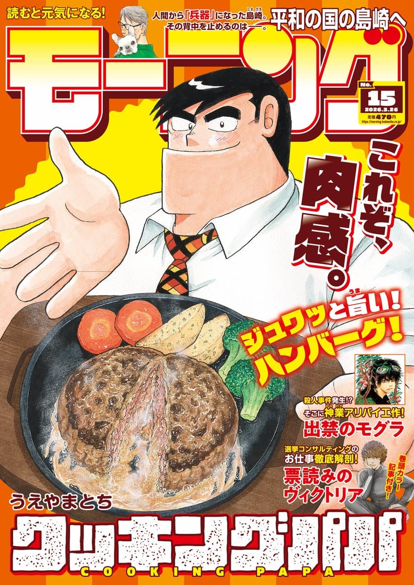 Long-running Food Series "Cooking Papa" by Ueyama Tochi is on cover in the upcoming Weekly Morning issue 15/2026.