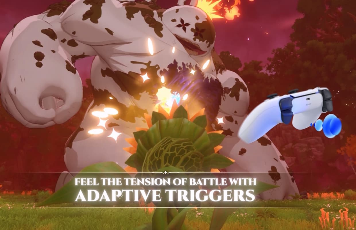 The trailer highlights PlayStation 5 features such as haptic feedback and adaptive triggers.