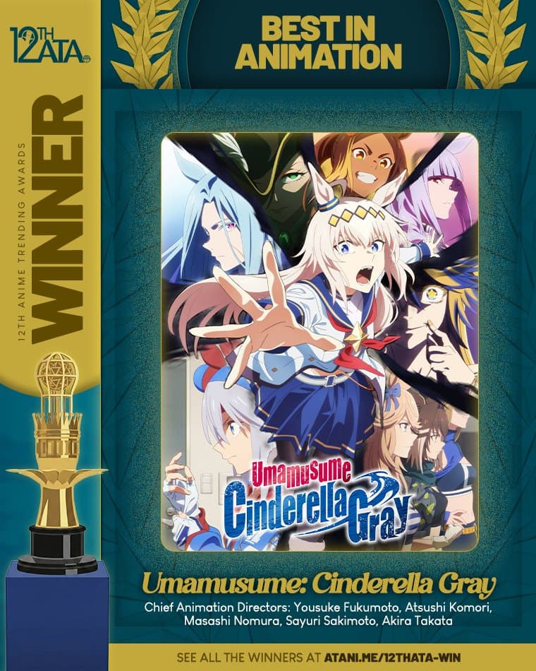 Congratulations to Umamusume: Cinderella Gray for winning BEST IN ANIMATION at the 12th Anime Trending Awards! This award goes to the entire team of amazing animators that worked on Umamusume: Cinderella Gray's anime! This is Umamusume: Cinderella Gray's
