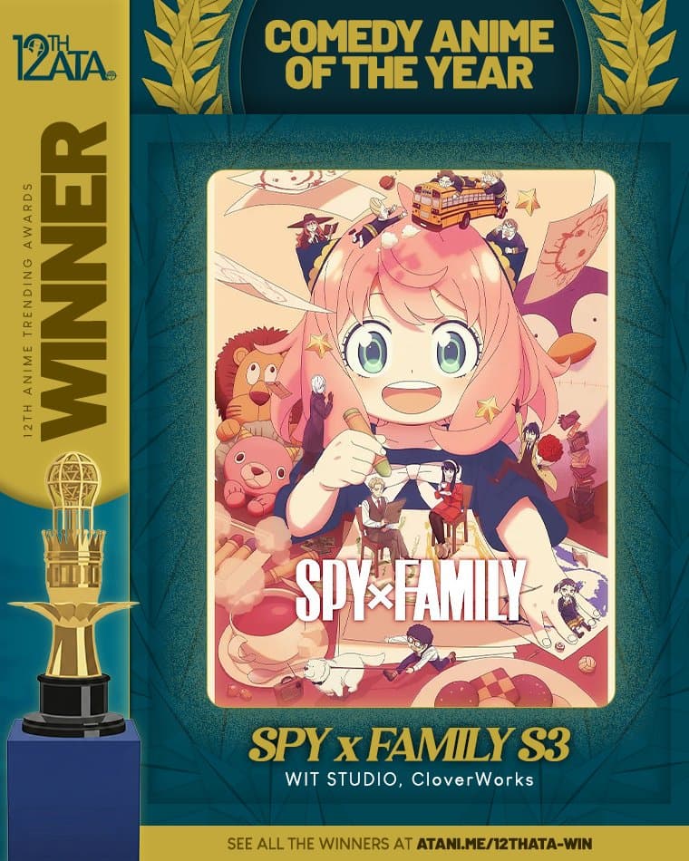 Congratulations to SPY x FAMILY for winning COMEDY ANIME OF THE YEAR at the 12th Anime Trending Awards! This is SPY x FAMILY's first win tonight.