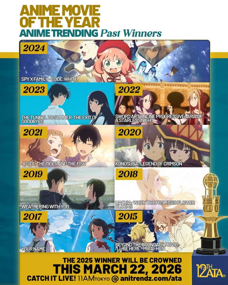 ⏳ 2 DAYS TO GO UNTIL THE 12TH ANIME TRENDING AWARDS! Today, we're looking back at the anime films voted the best over the past 11 years! Historically, this Top Anime Movie award has alternated