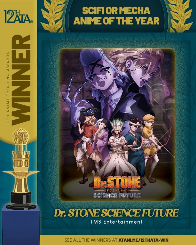 Congratulations to Dr. STONE SCIENCE FUTURE for winning SCIFI OR MECHA ANIME OF THE YEAR at the 12th Anime Trending Awards! This is Dr. STONE SCIENCE FUTURE's first win tonight.