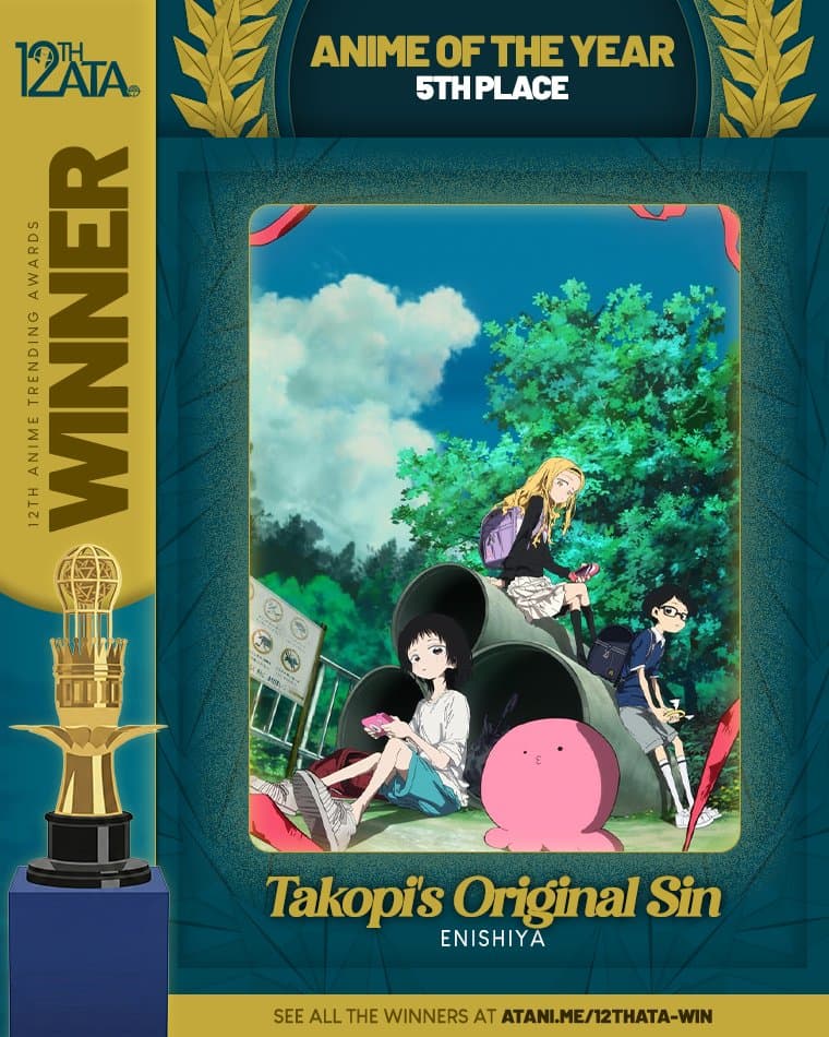 Takopi's Original Sin finishes in 5th Place for the Anime of the Year Title of the 12th Anime Trending Awards! The series won 2 awards, and 2 other podium finishes tonight.