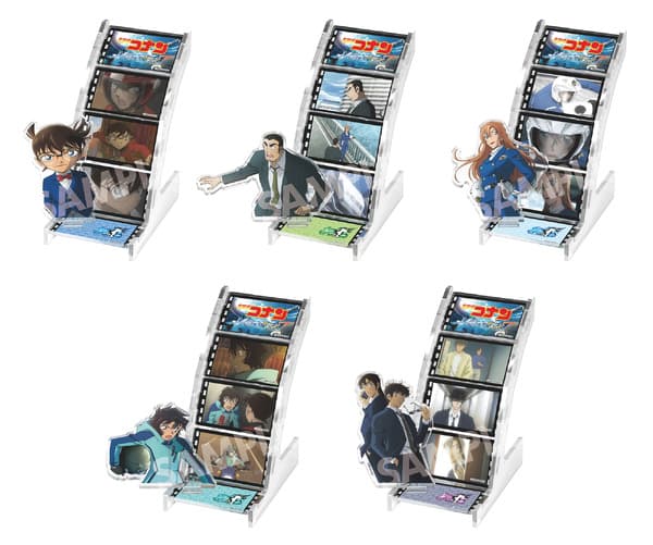 New acrylic stand dioramas inspired by movie scenes from Detective Conan: Highway of the Fallen Angels will be released, featuring characters Chisuke, Jugo, and Sera on desk display.