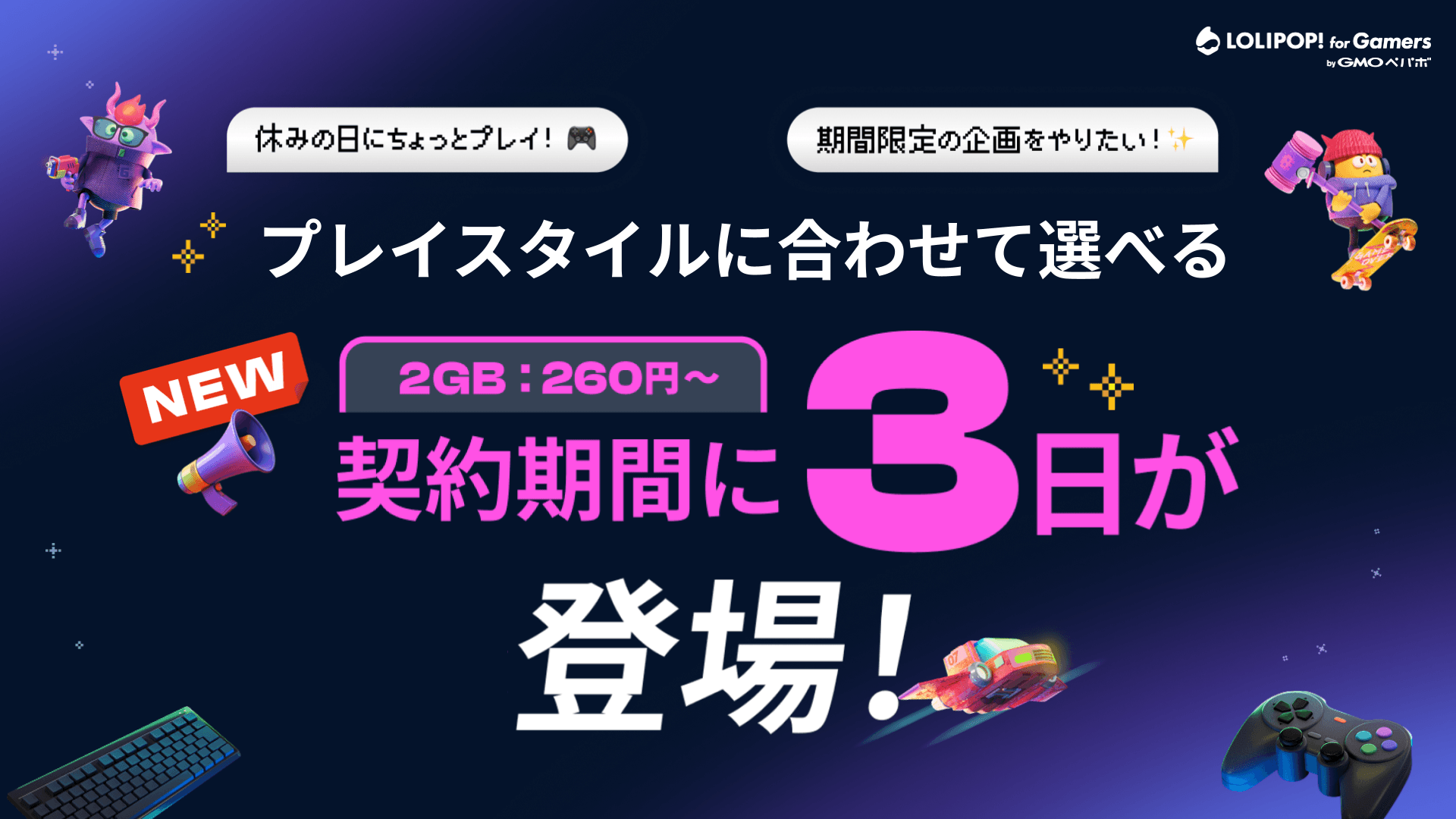 GMO Pepabo’s game multiplayer server “Lolipop! for Gamers” will allow users to start new contracts for as little as 3 days beginning April 27.